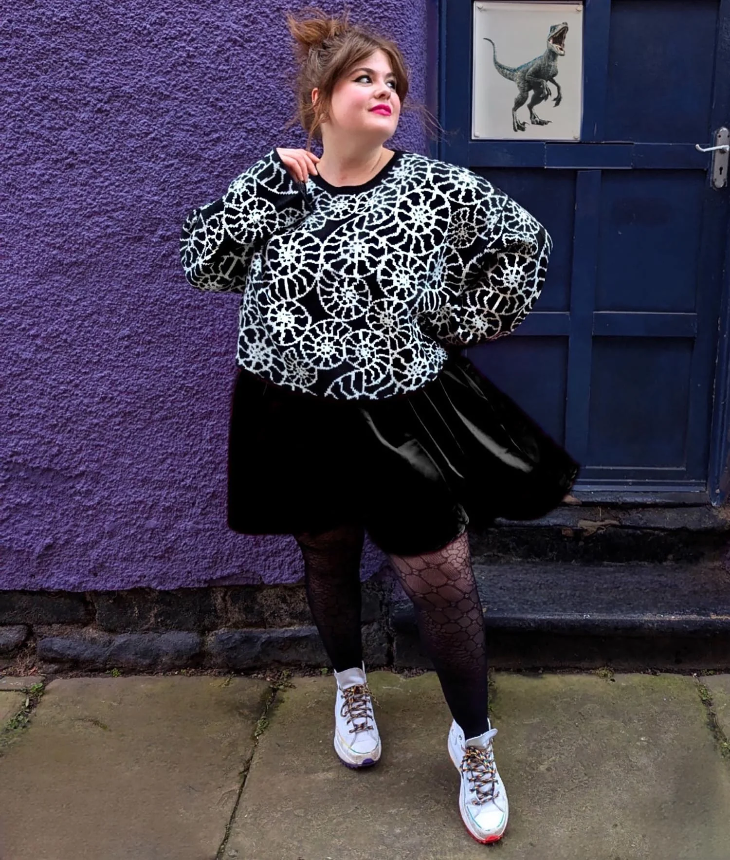 Channelling your inner palaeontologist just got so much easier, stay cosy and look fossil-fabulous with the Ammonite Cropped Jumper! The black base has a white ammonite pattern knitted all over the jumper.