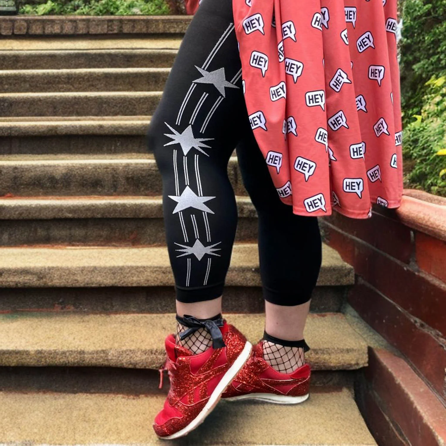 Lunar opaque capri tights feature a black base with a striking white star and stripe pattern along the sides. The design is knitted in, not printed on, ensuring it looks great on all sizes without warping. These are perfect for adding something special to your fits, and will stay in place all day without rolling down, digging in, or sagging. Ideal for festivals, workouts, or everyday wear!